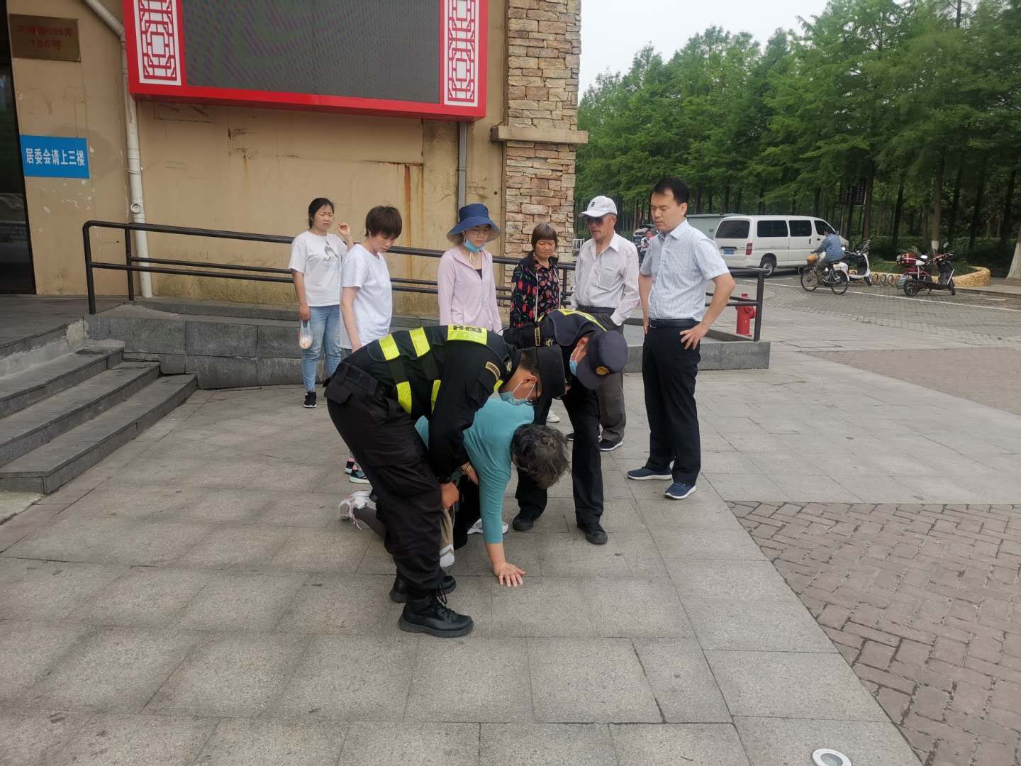 5月18號6:50,崇明長興島項目隊員張耀華在一街區(qū)華聯(lián)超市進行日常市容管理時,突然聽到一聲大喊,循聲過去看到一位老奶奶倒在地上。小張急忙趕過去,將躺在地上疼得發(fā)抖的老奶奶扶到椅子上休息,詳細詢問了老奶奶發(fā)生的情況和親屬的聯(lián)系方式。原來老奶奶上樓梯時不小心一腳踩空,從樓梯上摔了下來。見老奶奶休息一會無大礙后,與同事一起把老奶奶送到家里。