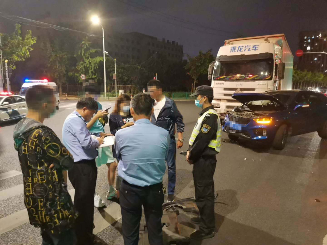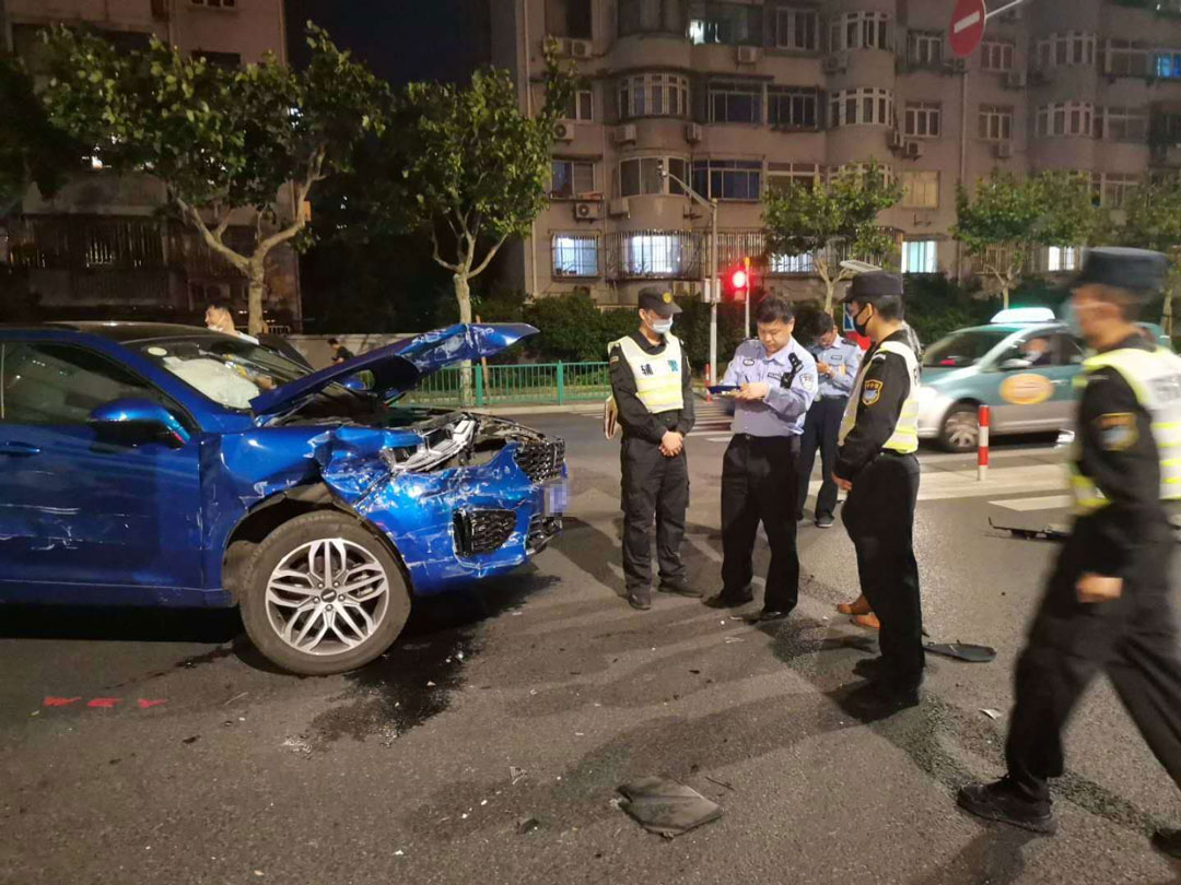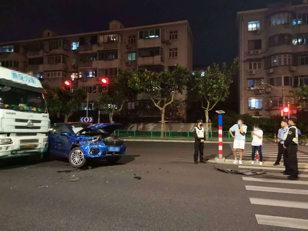 5月20日20:40,浦東新區(qū)金橋鎮(zhèn)巨峰路金京路交叉口發(fā)生一起大貨車與小汽車相撞的交通事故。宗保公司駐金橋派出所輔警項(xiàng)目隊(duì)員范沖、黃祥宇剛好巡邏至此,目睹了事故的全過(guò)程。