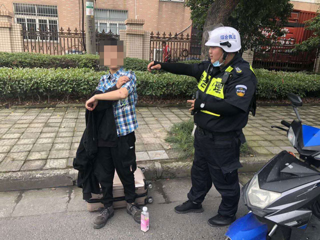 經(jīng)了解,得知小男孩今年14歲,隨父親從安徽老家來杭州打工,因被父親長期家暴所以離家出走,已經(jīng)兩天兩夜沒有吃東西了。隨后隊員查看男孩身體,發(fā)現(xiàn)有多處明顯傷痕。