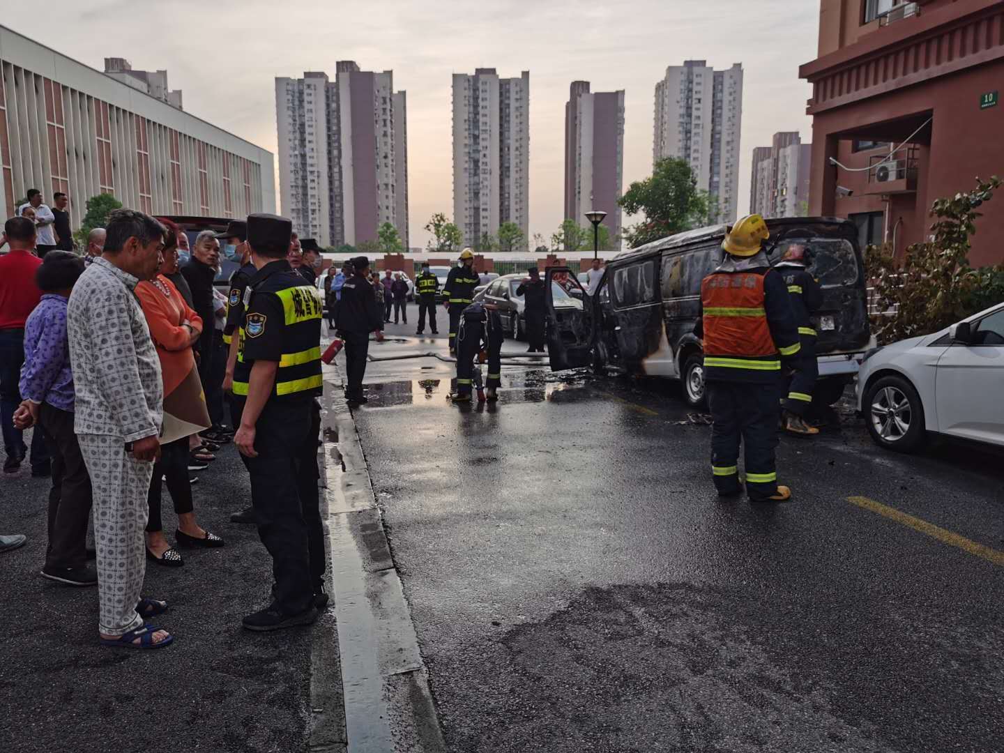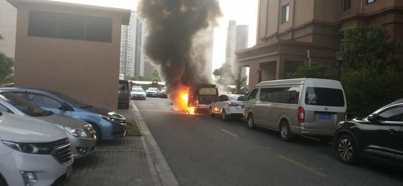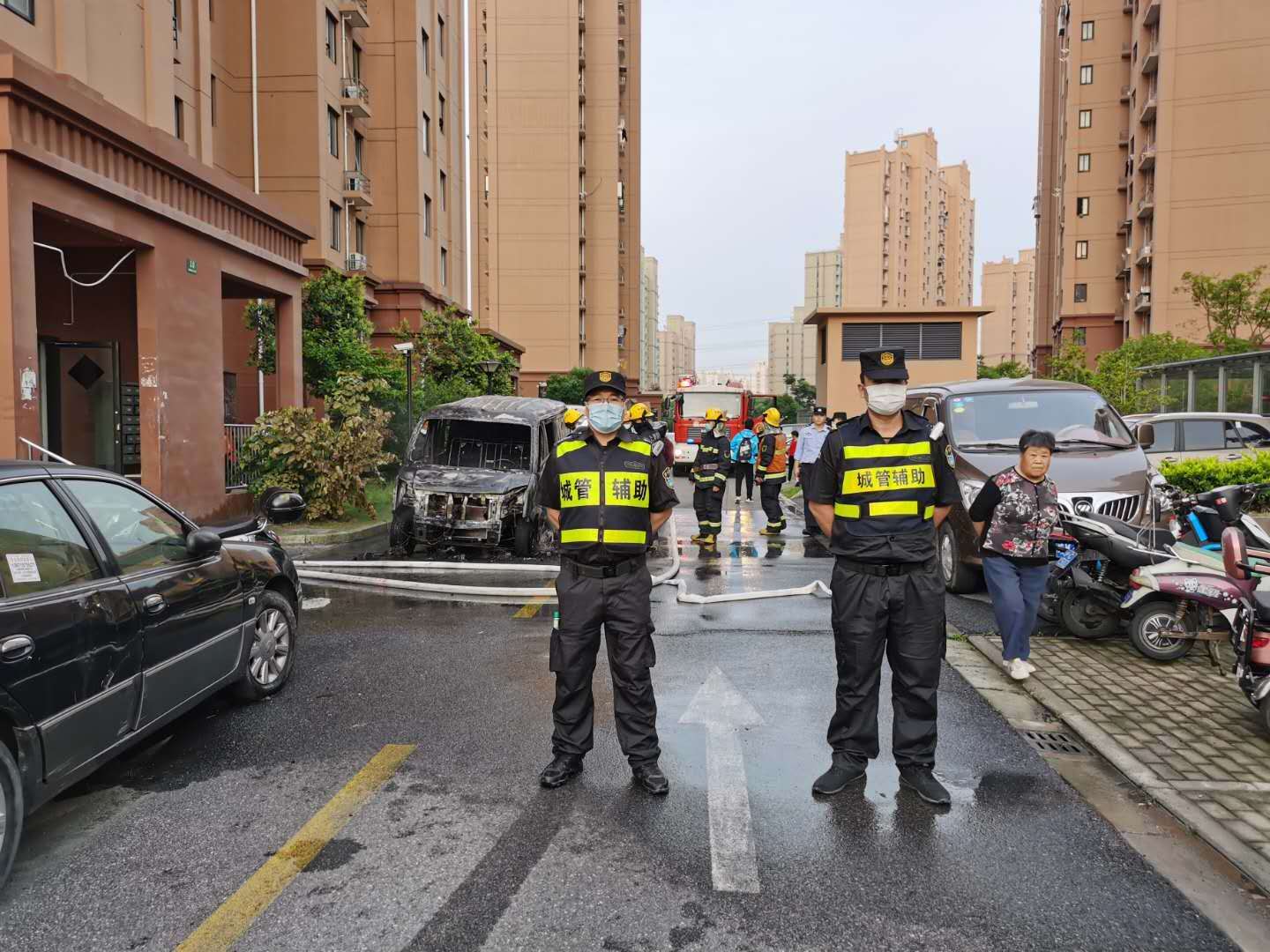 6月2日4:40,宗保公司駐周浦市容項(xiàng)目隊(duì)員胡德良在周陽(yáng)路泰豐里小區(qū)巡邏時(shí),發(fā)現(xiàn)一輛新能源汽車(chē)起火,現(xiàn)場(chǎng)濃煙滾滾,火勢(shì)較大。而且旁邊還停有幾輛汽車(chē),一旦發(fā)生爆燃,后果不堪設(shè)想。事不宜遲小胡急忙撥打119報(bào)警,并向當(dāng)班組長(zhǎng)報(bào)告要求前來(lái)支援。