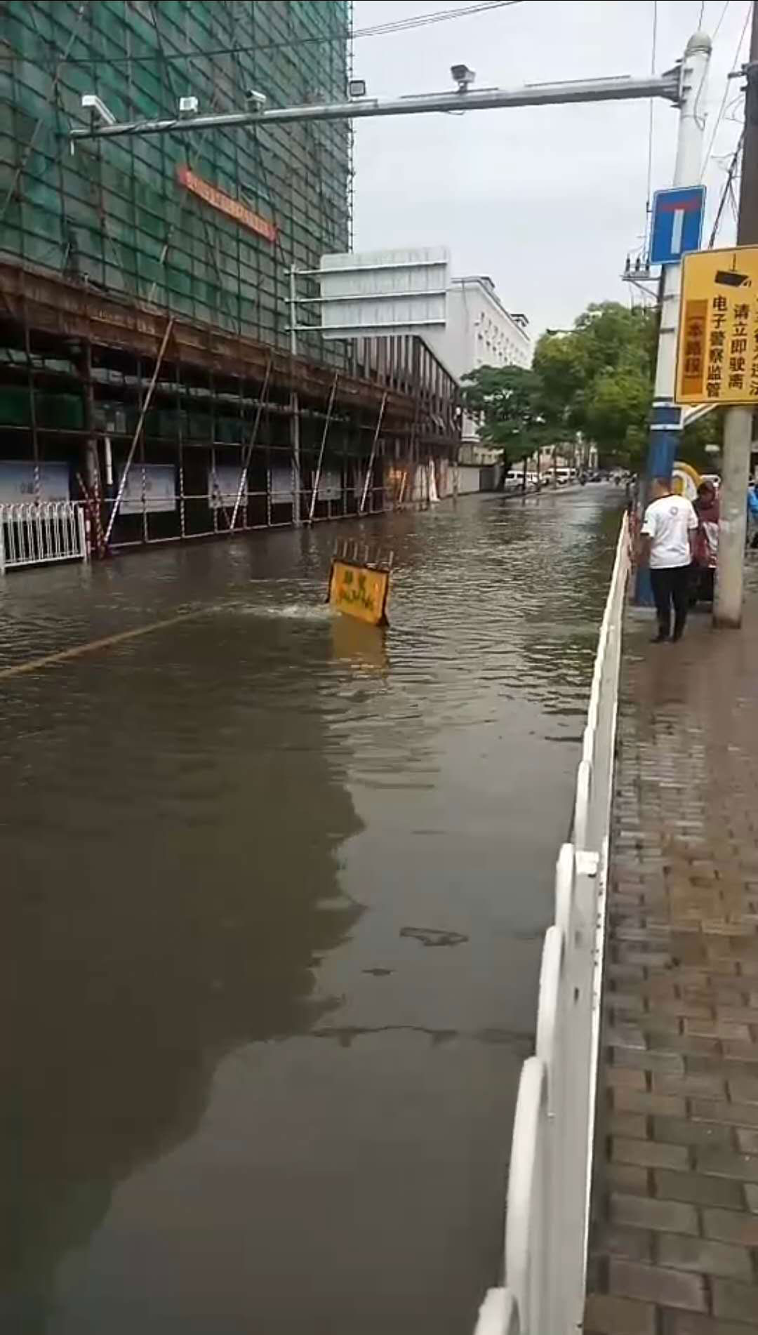 6月5日,閔行區(qū)虹梅南路莘朱路路口,由于突降暴雨,下水道堵塞路面積水,嚴重影響道路交通安全。