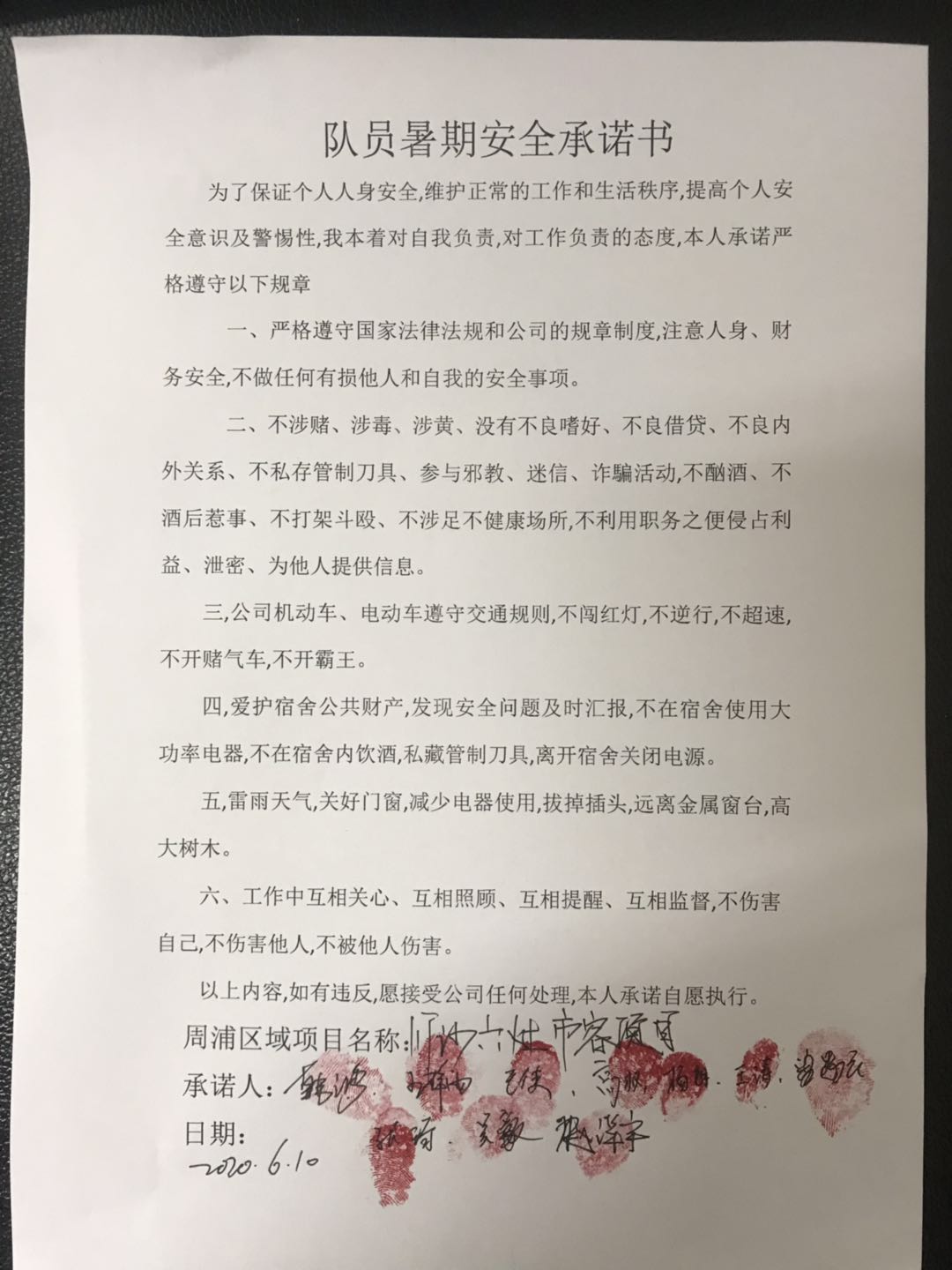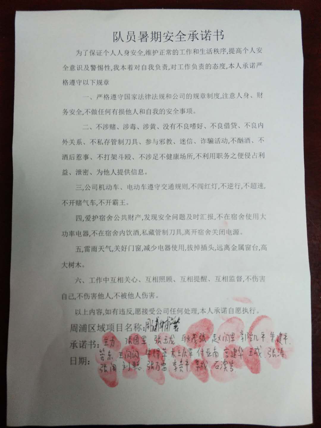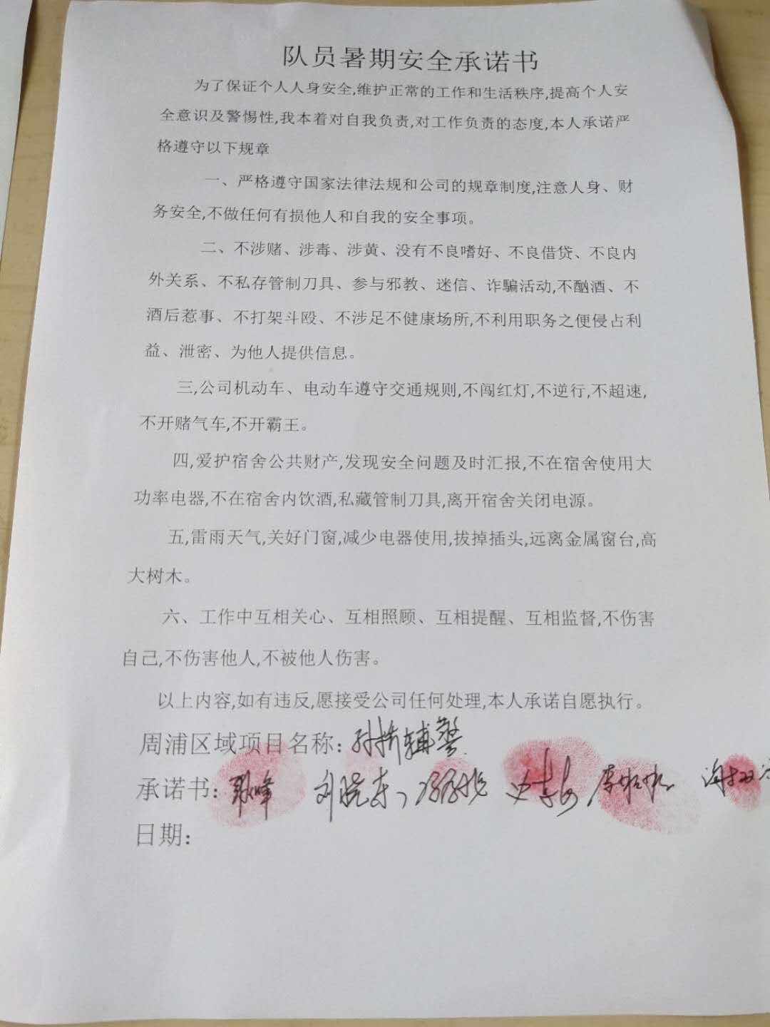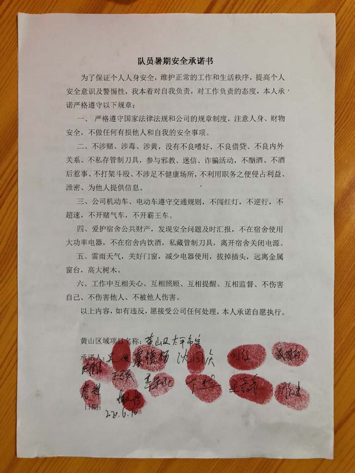 全體員工認(rèn)真學(xué)習(xí)領(lǐng)會公司暑期安全工作部署會精神,思想上高度重視,行動上堅(jiān)定自覺,各項(xiàng)目骨干帶頭與隊(duì)員簽訂暑期安全承諾書,強(qiáng)化責(zé)任意識,筑牢安全防線,堅(jiān)守安全底線,確保平穩(wěn)度夏。
