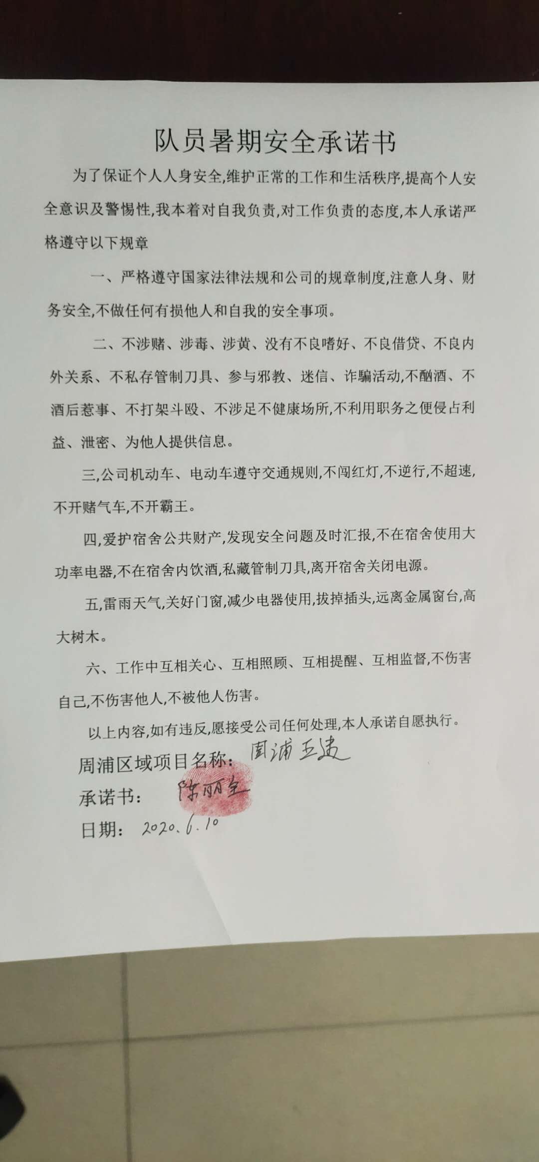 周浦區(qū)域簽訂安全承諾書