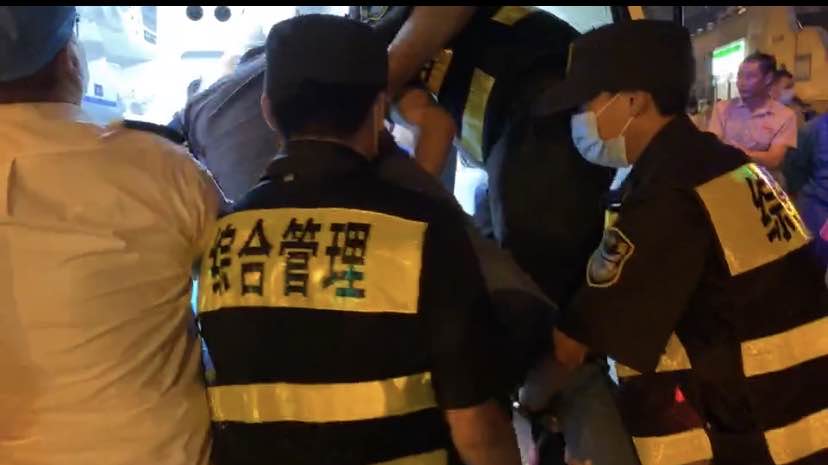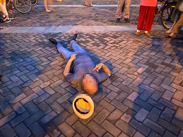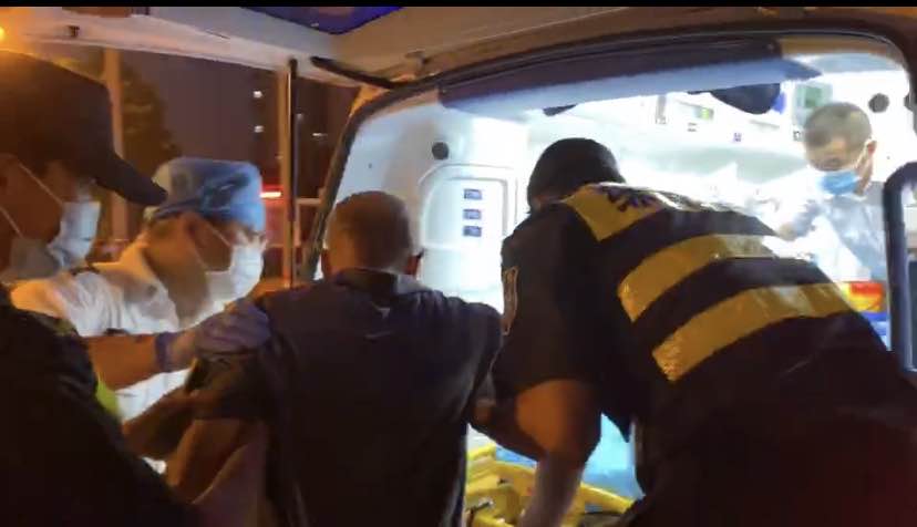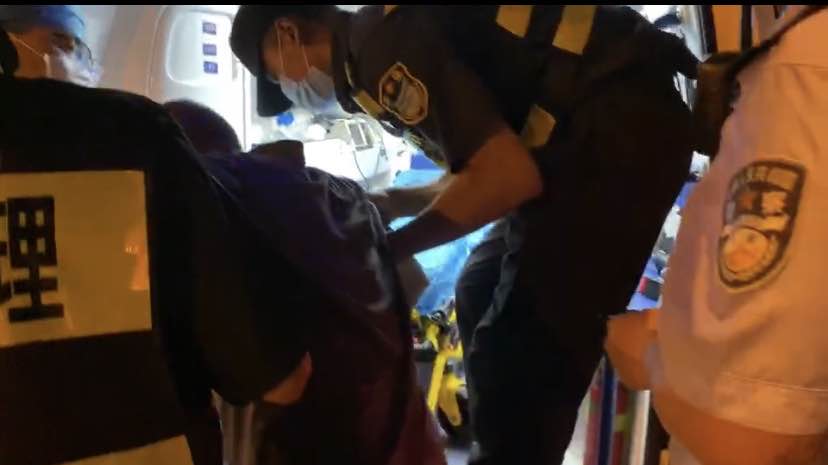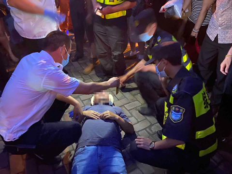 6月17日19:35,宗保公司駐長興島市容隊員趙崇博、丁俊鵬、王長才、李港迪四人正在一街區(qū)華聯(lián)超市廣場巡邏時,看到前面有人倒在地上,現(xiàn)場多人圍觀。