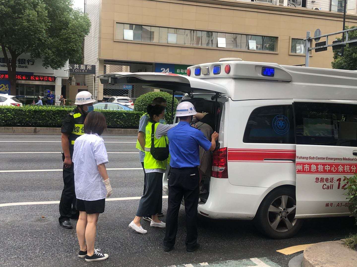 大概十分鐘后,救護(hù)車趕到現(xiàn)場(chǎng)。田周行和范志平協(xié)助醫(yī)護(hù)人員把阿姨抬上了救護(hù)車,隨后繼續(xù)投入到緊張的工作中。兩名保安員的行為,得到了醫(yī)護(hù)人員和周圍群眾的點(diǎn)贊。