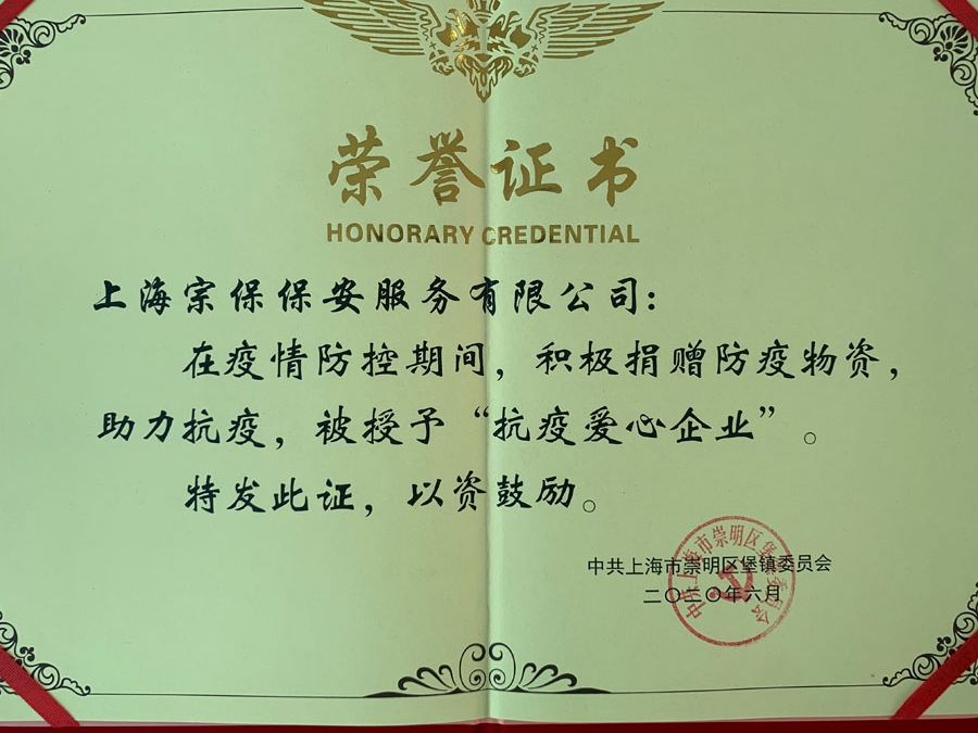 7月1日,崇明區(qū)堡鎮(zhèn)舉行紀念中國共產(chǎn)黨成立99周年大會。上海宗保保安服務有限公司當選為堡鎮(zhèn)“抗疫愛心企業(yè)”,崇明區(qū)域經(jīng)理馬應龍上臺領獎。
