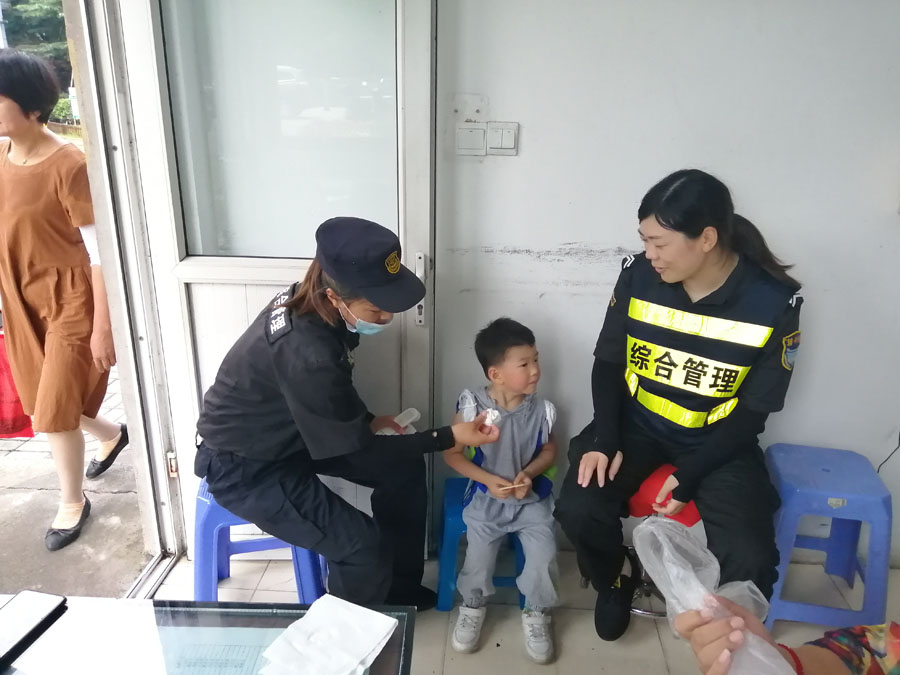 7月12日10:00,宗保公司駐高橋市容隊員馬卉蘭在高橋公園巡邏時,發(fā)現(xiàn)一名四五歲的小男孩在河邊哭,于是便上前詢問。“小朋友,你怎么一個人在河邊?家里人呢?”小男孩就是搖頭,一句話也不說,聽到問起家人,哭得更厲害了。