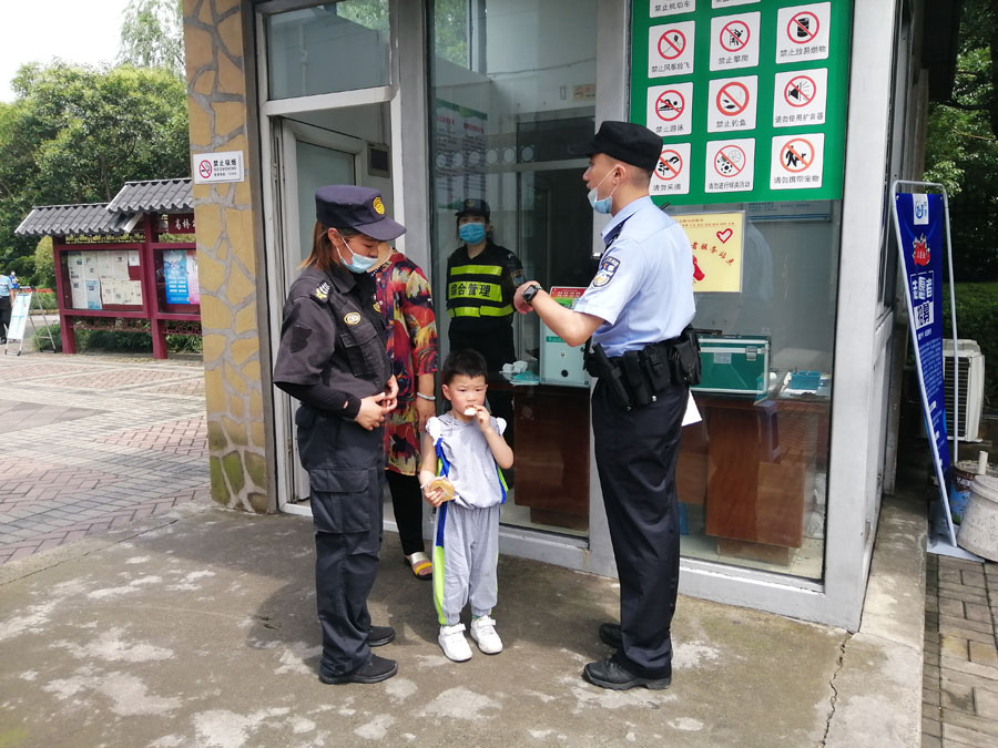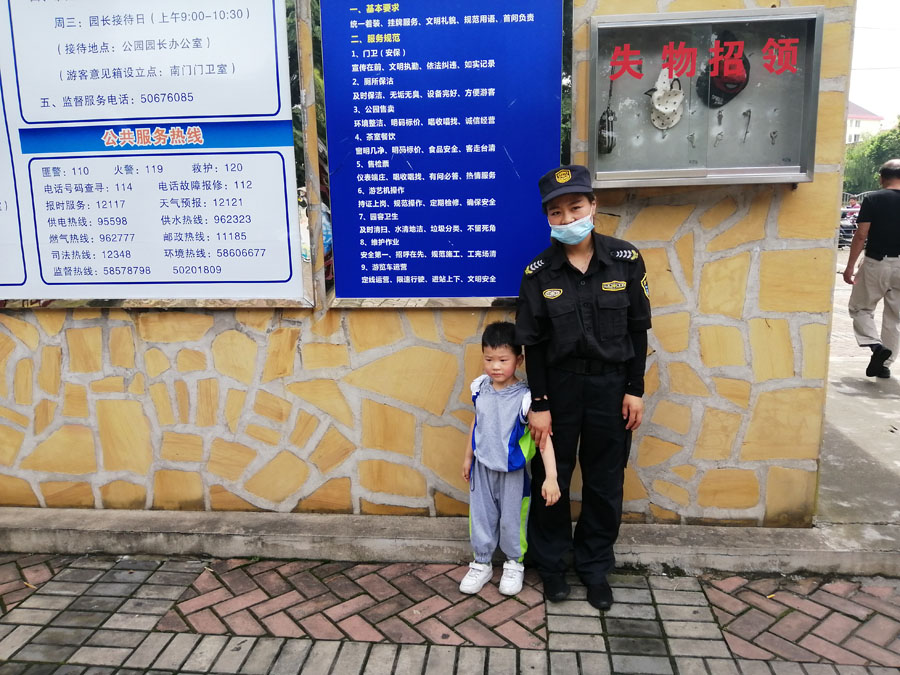 馬卉蘭一看情況,一準是小朋友對陌生人有所戒備,便蹲下耐心地跟小男孩說:“小朋友,你看姐姐不是壞人,姐姐每天都在這里上班,經(jīng)常在公園散步鍛煉的爺爺奶奶都認識姐姐,你跟姐姐說是不是和家人走散了?”看到這么溫暖的保安姐姐,小男孩放松了戒備,說家在附近,跟奶奶一起出來的,可是不知道奶奶去哪里了。