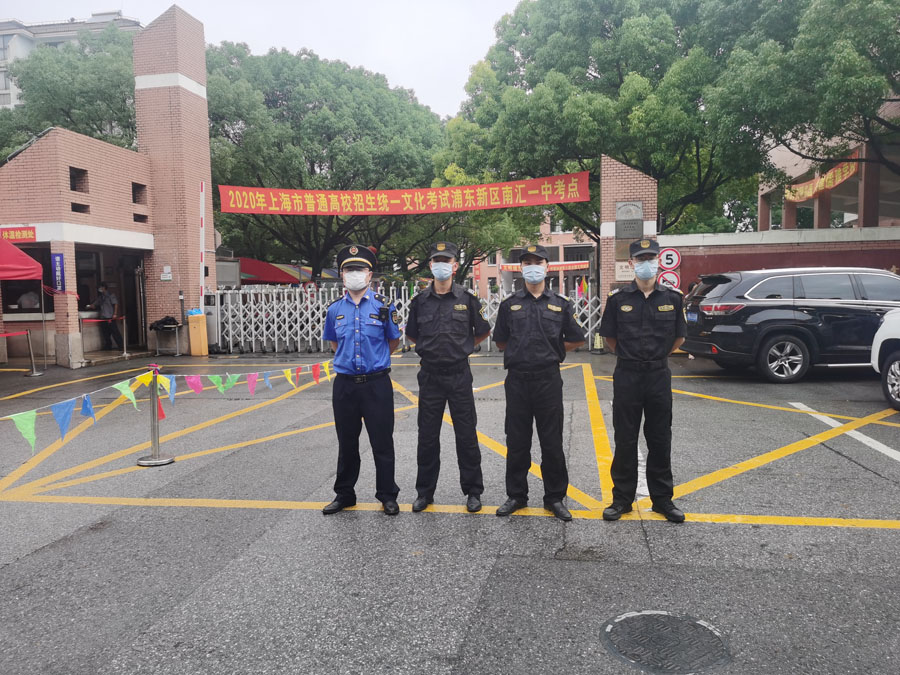 公司挑選近200名素質過硬、業(yè)務精干的隊員擔負周浦中學、南匯一中、南匯中學、華師大二附中、金山衛(wèi)鎮(zhèn)金衛(wèi)中學等考點附近相關道路的保障任務,配合有關部門對考場周邊的噪音污染、占道設攤、交通不暢、體溫測量等工作進行輔助管理。高考日,考點周邊的大街上、校門口、大雨中,都閃現著宗保人護考的身影,他們頂著潮熱、冒著大雨、一絲不茍,為助力學子圓夢值守護航。
