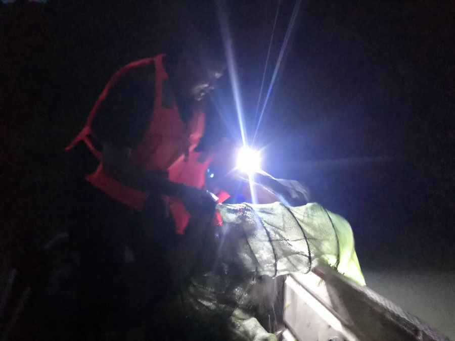 汛期洪水過后,齊云山轄區(qū)橫江流域水位迅速下降,附近漁民趁機下網(wǎng)布籠進行非法捕撈。為保護橫江生態(tài)環(huán)境,在齊云山景區(qū)管委會的組織和帶領(lǐng)下,宗保隊員于7月14日18:00和15日凌晨3:00兩次出擊,在齊云山轄區(qū)橫江水域協(xié)助執(zhí)法部門打撈并收繳地籠20多副、魚網(wǎng)30多副。