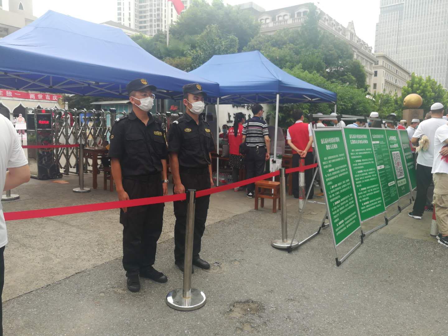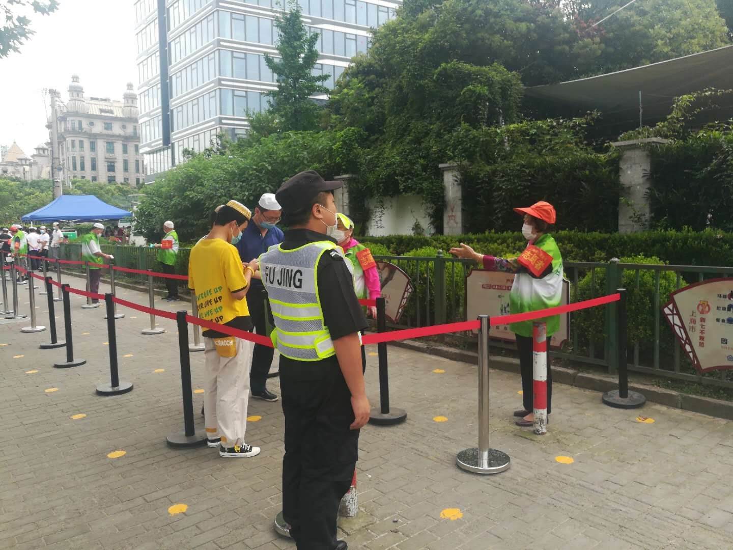 自新冠肺炎疫情暴發(fā)以來,浦東清真寺一直處于封閉狀態(tài)。7月31日,迎來了伊斯蘭教重大節(jié)日—古爾邦節(jié)。此次是浦東第一個宗教場所恢復開放,街道和派出所領導高度重視。宗保公司駐洋涇輔警項目接到任務后,選派10名精干隊員,配合民警維護節(jié)日現(xiàn)場秩序,嚴格控制人流密度,設立告示牌、一米線等標示。