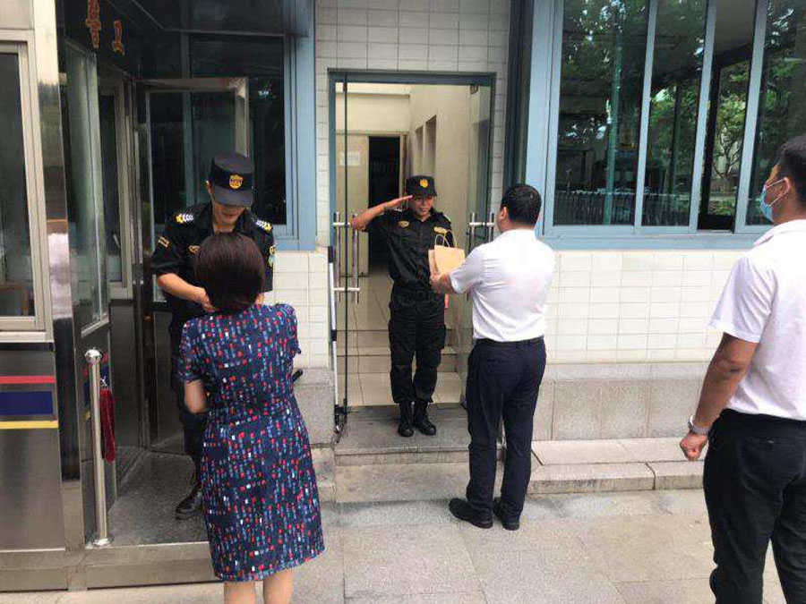 每到一處宗保公司隊員都列隊歡迎。校領導詳細詢問了員工的工作情況、身體狀況、有哪些需要等,稱贊宗保隊員們在安保工作中儀容儀表好、業(yè)務熟練精湛、車輛指揮有序,對隊員們堅守崗位、認真履責、默默付出,確保各校區(qū)的安全表示感謝!并囑咐大家要注意飲食和休息,加強隱患排查,做好高溫天氣防暑降溫工作。隊員們紛紛表示,牢記領導的關心,再接再厲,踏實工作,堅決完成好工作任務,不辜負領導的期望和關懷。