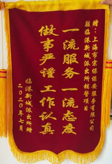 收到派出所贈送的錦旗就是甲方對工作最好的肯定和認(rèn)可,宗保公司臨港新城項目隊員倍感光榮,將繼續(xù)保持和發(fā)揚好的工作作風(fēng),自我加壓不斷提高業(yè)務(wù)水平,以更好的工作狀態(tài)、更好的工作業(yè)績讓甲方滿意,為公司贏得更多更高的榮譽。