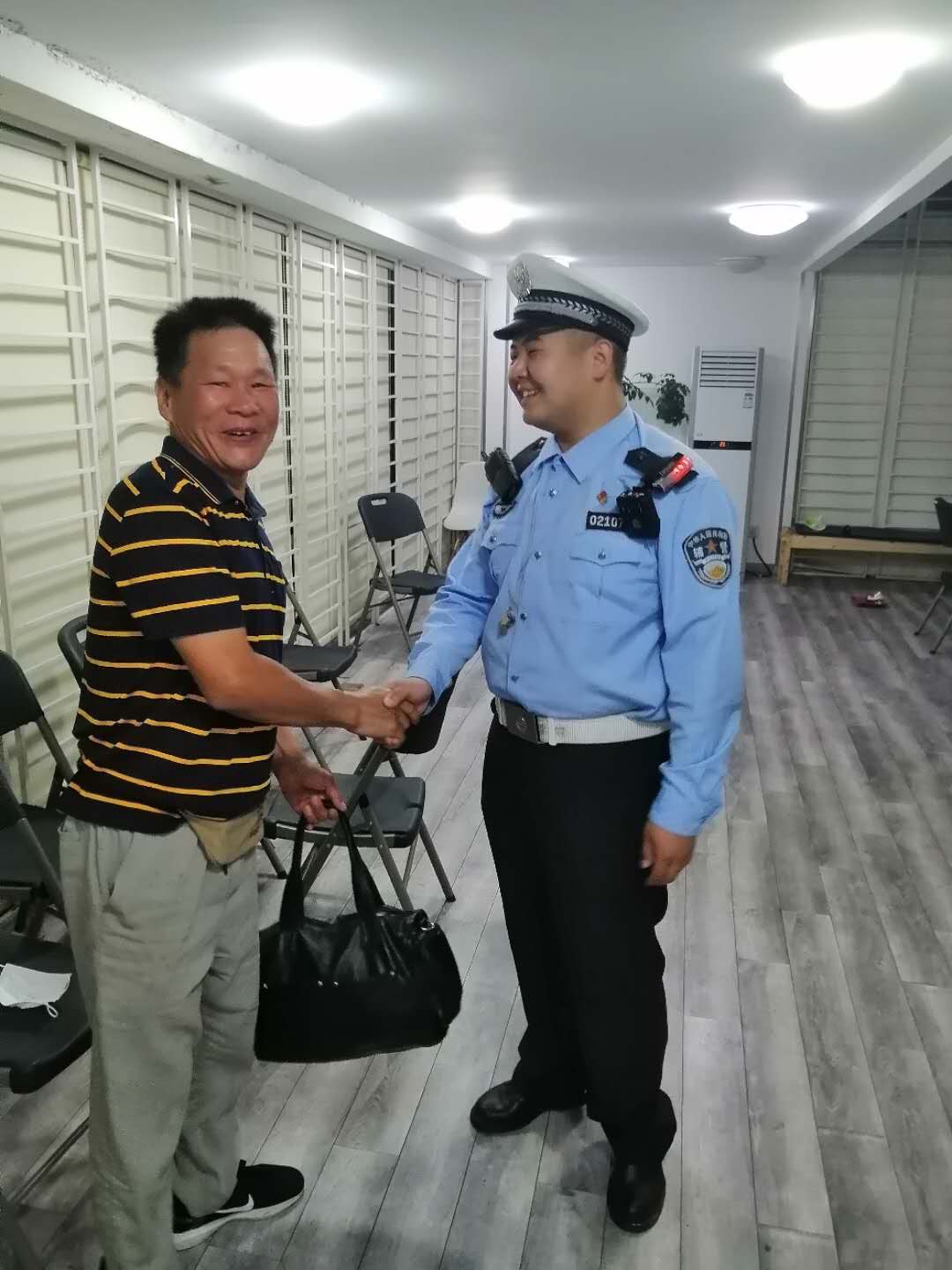 9月7日傍晚,上海宗保駐閔行虹橋輔警隊(duì)員王浩,在執(zhí)勤時(shí)撿到一個(gè)黑色手提包交還失主。