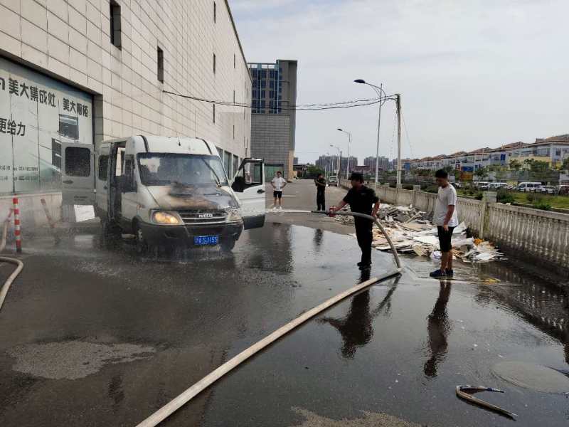 事發(fā)時(shí),一輛停在兩港裝飾城內(nèi)的依維柯車引擎蓋突然著火,瞬間火苗躥起。現(xiàn)場(chǎng)情況十分危急,公司駐兩港物業(yè)保安人員一邊以最快的速度疏散現(xiàn)場(chǎng)群眾,避免造成人員受傷;另一邊迅速拿起滅火器和消防水槍,不顧個(gè)人安危沖向火場(chǎng),最終將火勢(shì)撲滅,避免了嚴(yán)重的火災(zāi)事件發(fā)生。
