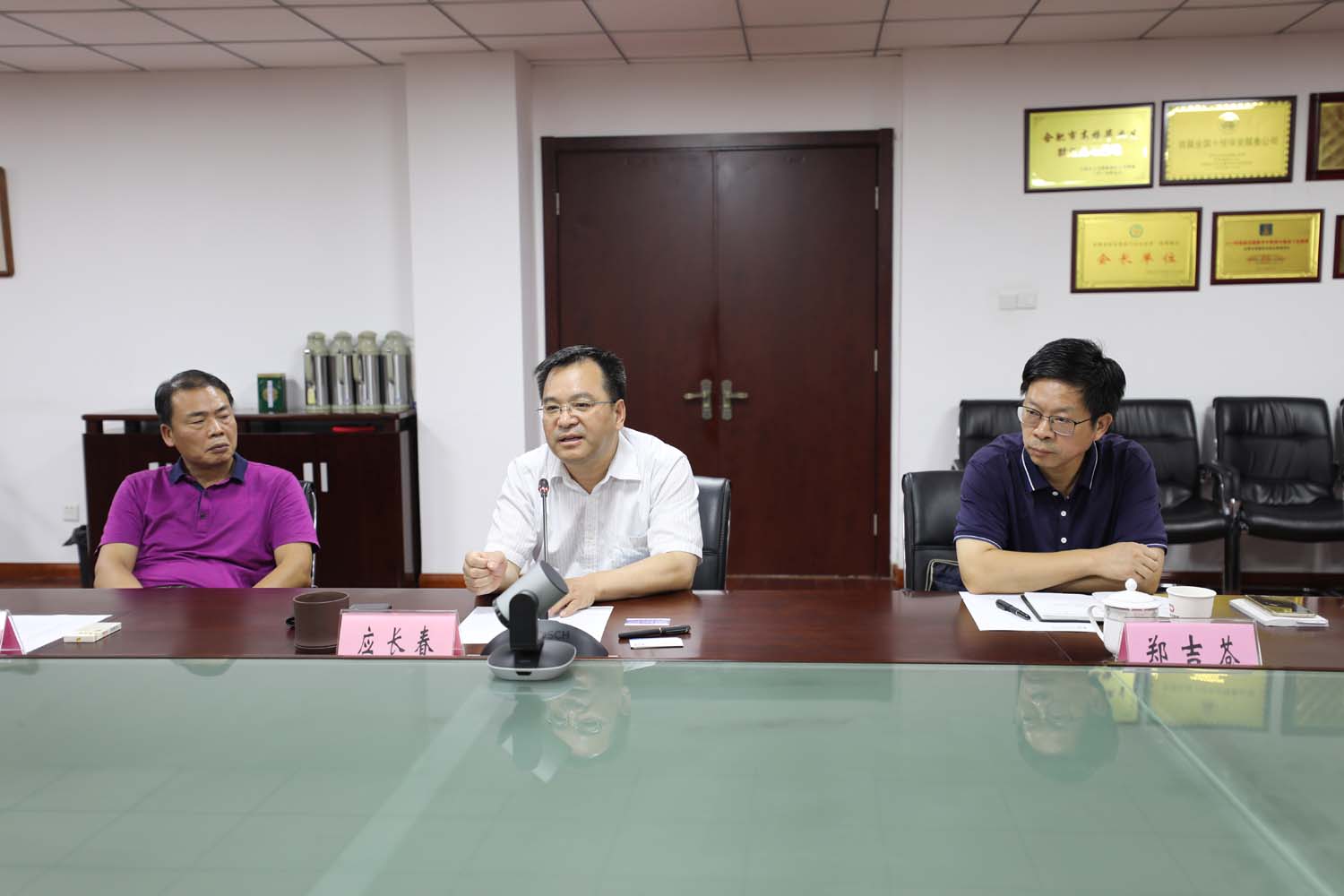 馮中保董事長對合肥保安集團的熱情接待表示感謝,向大家介紹了宗保公司的發(fā)展歷程、未來的發(fā)展方向,并表示:合肥保安集團是安徽保安行業(yè)里的“老大哥”,現(xiàn)有的一些創(chuàng)新并領先全國的管理方法和經(jīng)驗,是宗保公司學習的標桿和榜樣。公司覆蓋合肥全市的安全停車管理系統(tǒng)及“公檢法案審期間物品”保管業(yè)務上的工作經(jīng)驗,非常值得學習和借鑒。