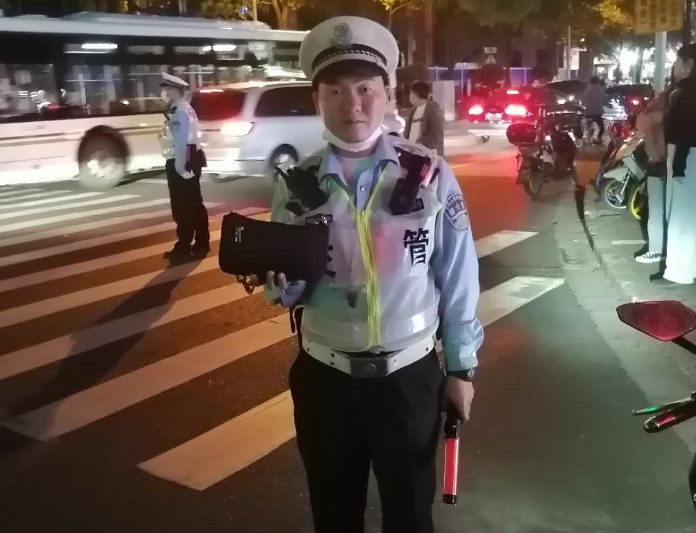 10月6日,閔行虹橋交管輔警隊(duì)員汪俊連撿到一個(gè)黑色的女士手包,上交民警幫助尋找失主。