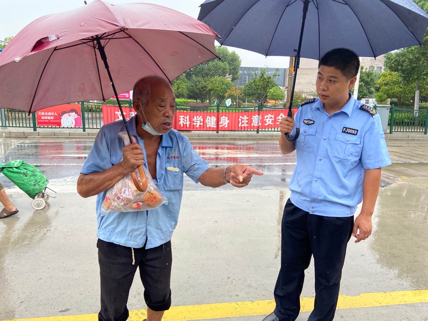 當(dāng)日11:00,厲國(guó)在崗位巡查時(shí),發(fā)現(xiàn)一位老大爺在崗?fù)じ浇腔玻袂榻箲],便即刻上前詢問(wèn)。老大爺年事已高,記不起家人的聯(lián)系電話,身上又沒(méi)有帶通訊工具,下雨了急著回家,卻找不到回家的路了。