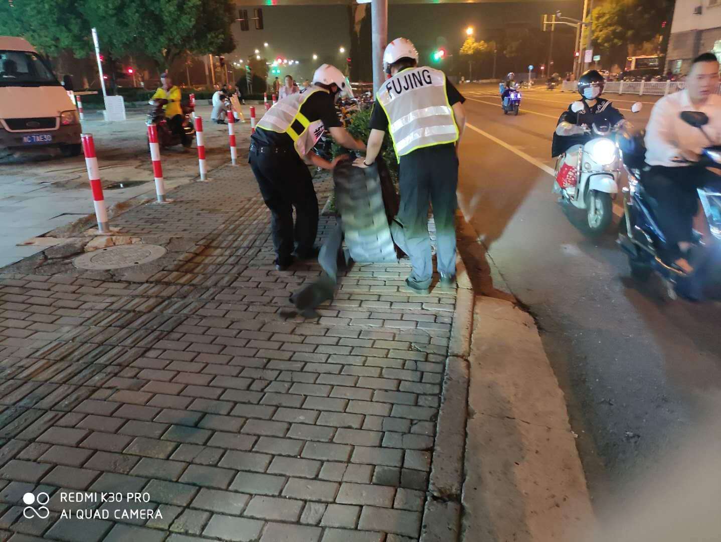 9月19日,宗保公司駐孫橋輔警項(xiàng)目隊(duì)員史李松、邵賓賓、王璐、劉夢(mèng)龍等及時(shí)清理馬路上的壞輪胎,消除安全隱患,受到在場(chǎng)群眾的紛紛點(diǎn)贊。