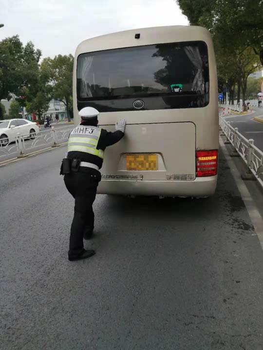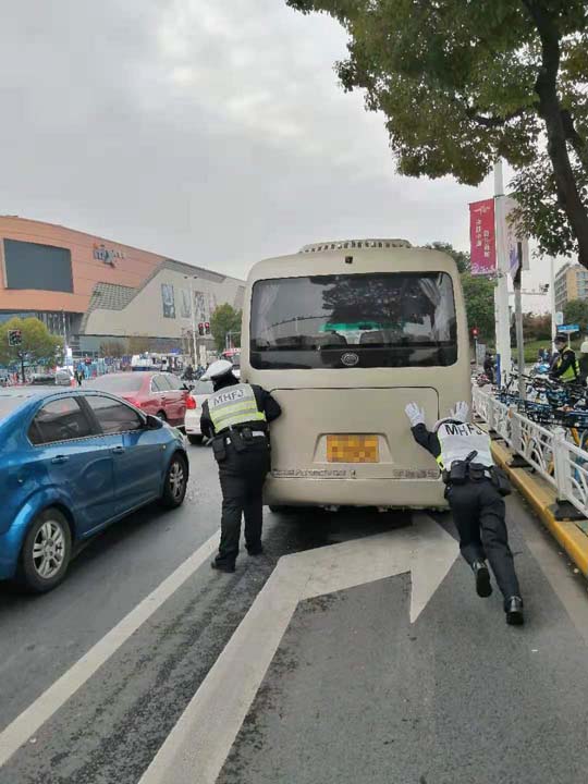客車拋錨司機(jī)急 隊(duì)員幫忙解難題—虹橋龍柏派出所交管輔警項(xiàng)目隊(duì)員幫助客車司機(jī)