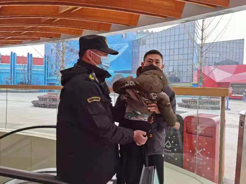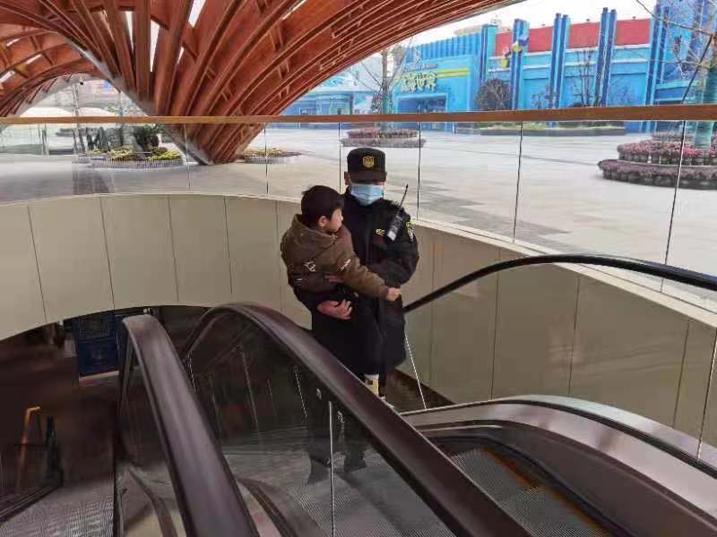 當天11:20左右,狄盛輝巡邏至歡樂谷公園廣場通往地下車庫的手扶梯處時,突然發(fā)現(xiàn)有一個小孩從手扶梯上不慎滑倒摔落,便第一時間跑向手扶梯處,抱住摔下來的孩子,查看是否受傷。