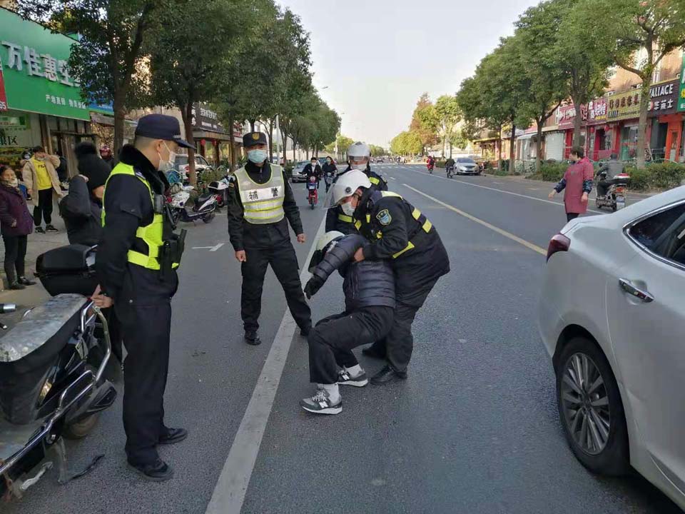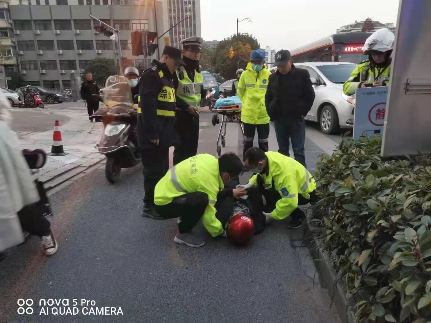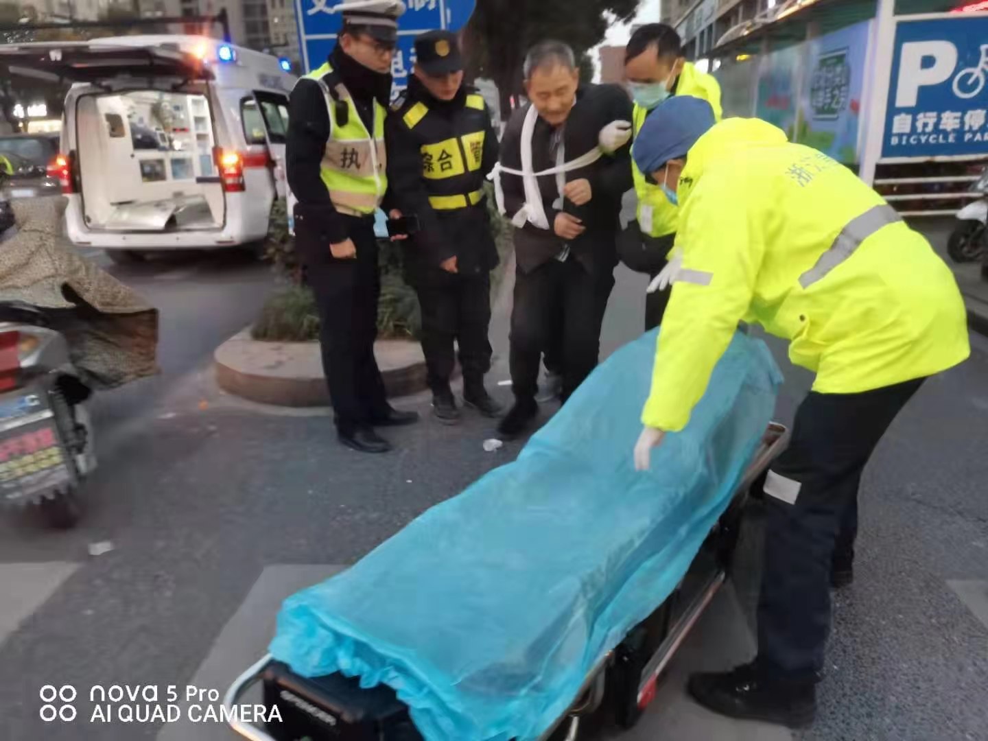 當天16:45,在超峰東路與東湖北路口,發(fā)生一起電瓶車和機動車相撞的交通事故,楊晨博剛好巡邏至此,發(fā)現(xiàn)一位老人被撞摔倒在地上。